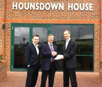 The Southampton Commercial Property Agents attended a recent reception for the marketing of Hounsdown House, the 14,000 sqft office building being offered to let on the Hounsdown Business Park Totton. Richard Pullen receives the prize for winning the agents competition presented by the letting agents Andrew Archibald of Keygrove and Philip Holmes of BNP Parisbas.